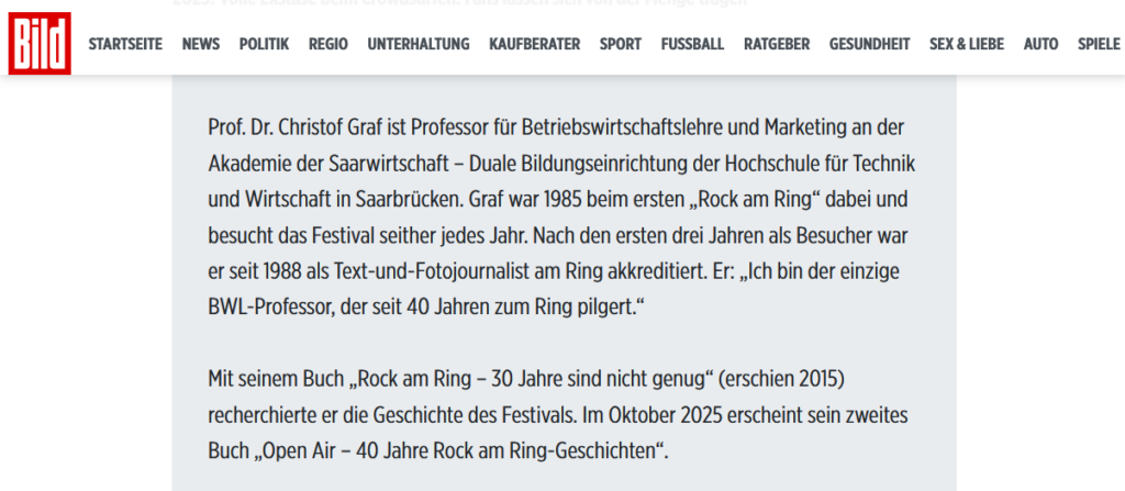 „Unvergessliche Momente“ – by Christof Graf (in BILD ONLINE, 04.062025)